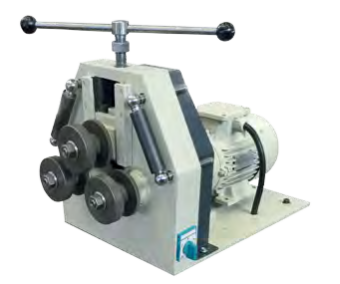 Электроприводные профилегибочные станки. Усилие для изгибания профиля создается электродвигателем. Такие станки являются стационарными и предназначены для серийного производства. Они хорошо подойдут для небольшого предприятия. Гнут как простой профиль, так и уголок и тавр. В состав профилегиба, помимо электромотора, входят: редуктор, упорные и прижимной ролики, блок управления. Подача заготовок производится вручную. Достоинством оборудования является высокая производительность, точность гиба и возможность работы с толстостенными профилями.