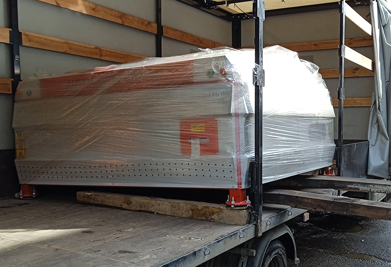 Тентованным грузовым транспортом, который выбирают с учетом веса и габаритных размеров станка. Тип загрузки - боковой или задний (зависит от модели станка).
